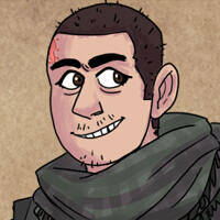 Bad Grief is the head of the criminal world in the town on gorkhon, as a leader of a gang of thieves and smugglers, and deals in illegal goods and bootlegged twyrine. It's a part he plays well- speaking in theatrics and making his position as the leader of these outlaws look easy with his non serious, almost playful, approach to it. However, even as well as he plays the part, in many ways it's just that. Not nearly as cruel as he'd like others to think of him as, he uses the life he's built for himself as an attempt to have some sort of freedom from the orders of anyone- including the steppe monsters he still holds a slight superstitious fear of. Cunning and observant, he also seems to be readily familiar with the town's gossip- knowing what nets and other compromising matters residents are caught up in, usually to his benefit.To say the least Bad Grief and I had a rocky start- neither of us quite trusted the other, and were strictly helping each other out for the sake of our own benefits at the time (and frankly the only trust we had in that arrangement was a mutual friend, Artemy, vouching for each of us to the other). However, as time went on and grief couldn't bring himself to not pry at the one person in town too private to have nets and gossip they were caught in. And as the threat of the plague only mounted, guards would eventually drop allowing a bond to form. Now, our relationship has a playful nature to it- quick to crack jokes, play fight, and tease each other, there's hardly a dull moment. Conversation often occurs over dice and card games, or in the dark by a fire in the steppe, under a full sky of stars. While we both struggle with being sincere with our feelings, it's a bit easier to let that guard down around each other and genuinely appreciate each other in a way we don't typically let ourselves be seen.